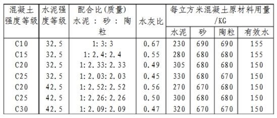 海南陶粒混凝土常用的配合比例